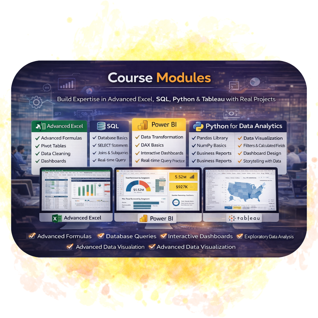 Master Advanced Excel, Power BI, SQL, Python & Tableau with Real Projects
